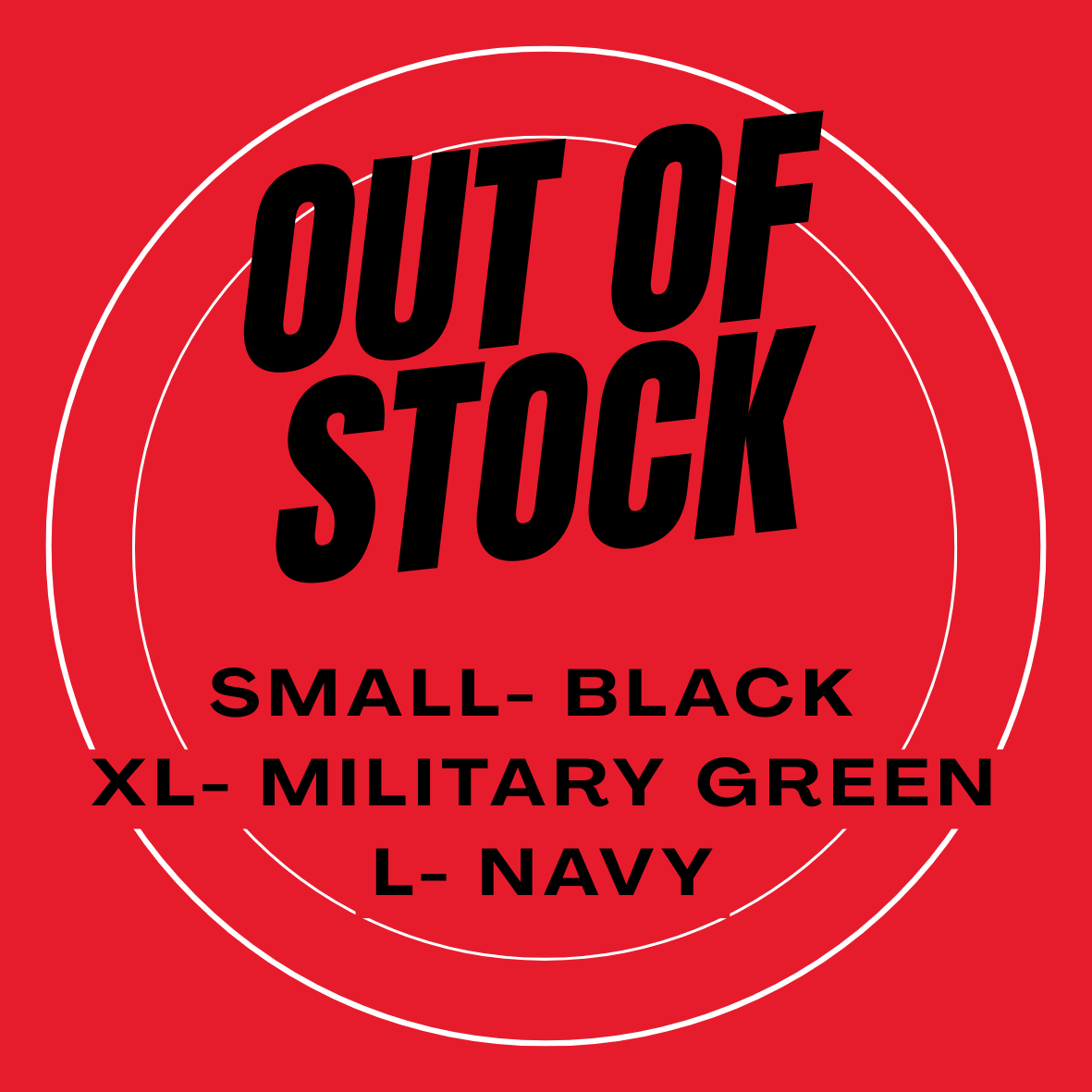 ***OUT OF STOCK- SMALL/BLACK, XL/MILITARY GREEN & L/NAVY***